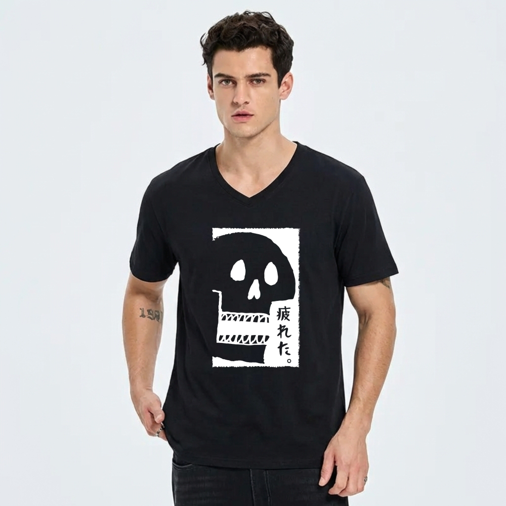 Black T Shirt With Skull And Japanese Text Design