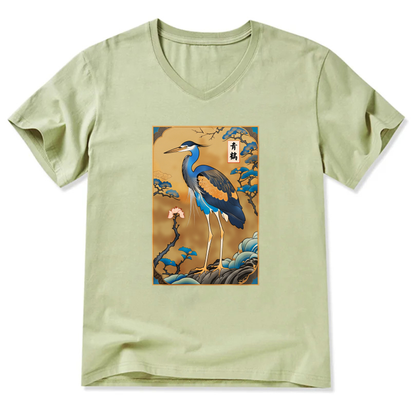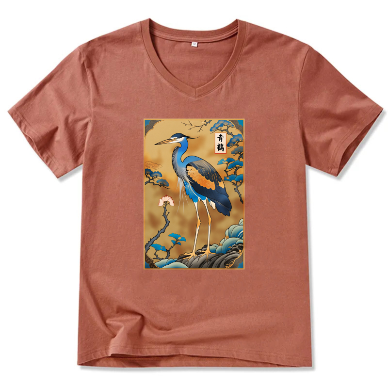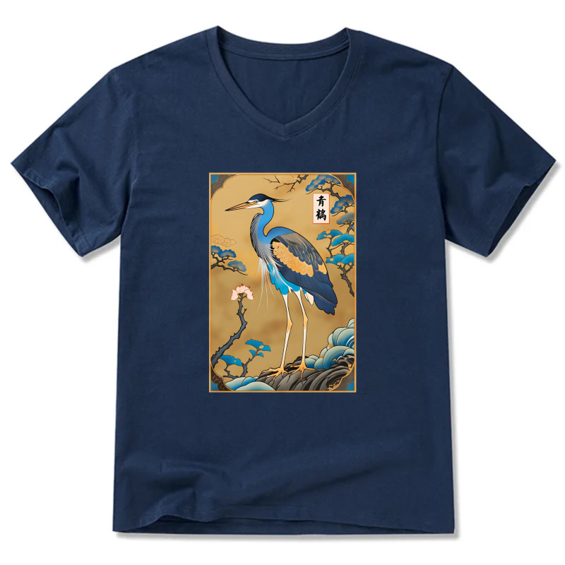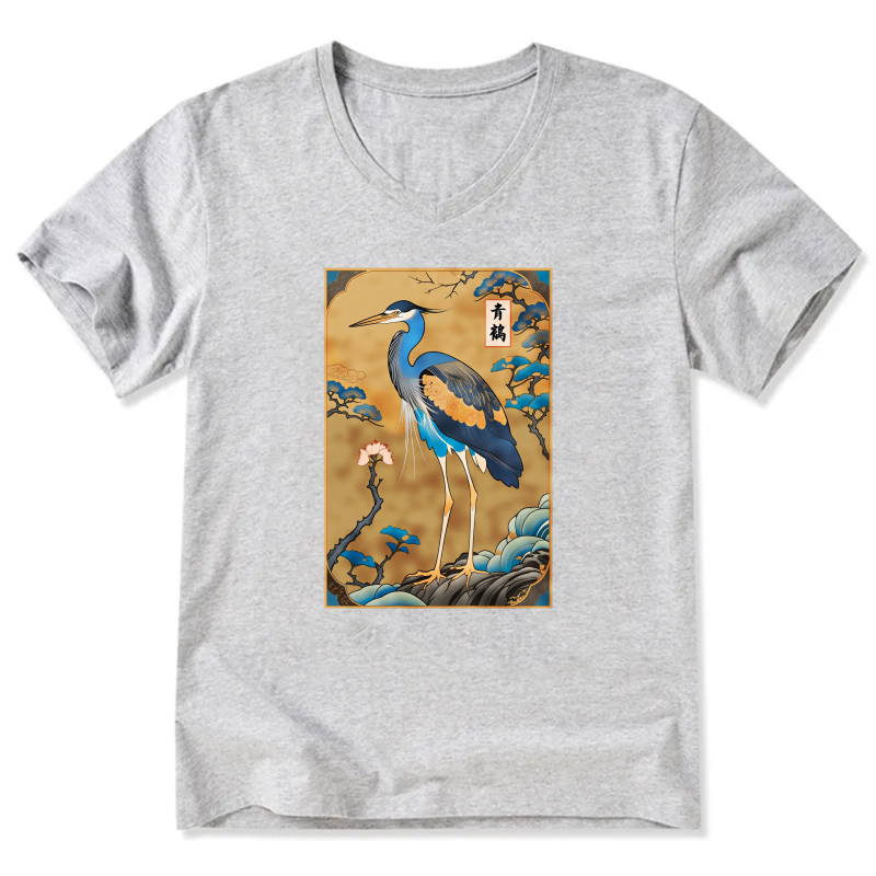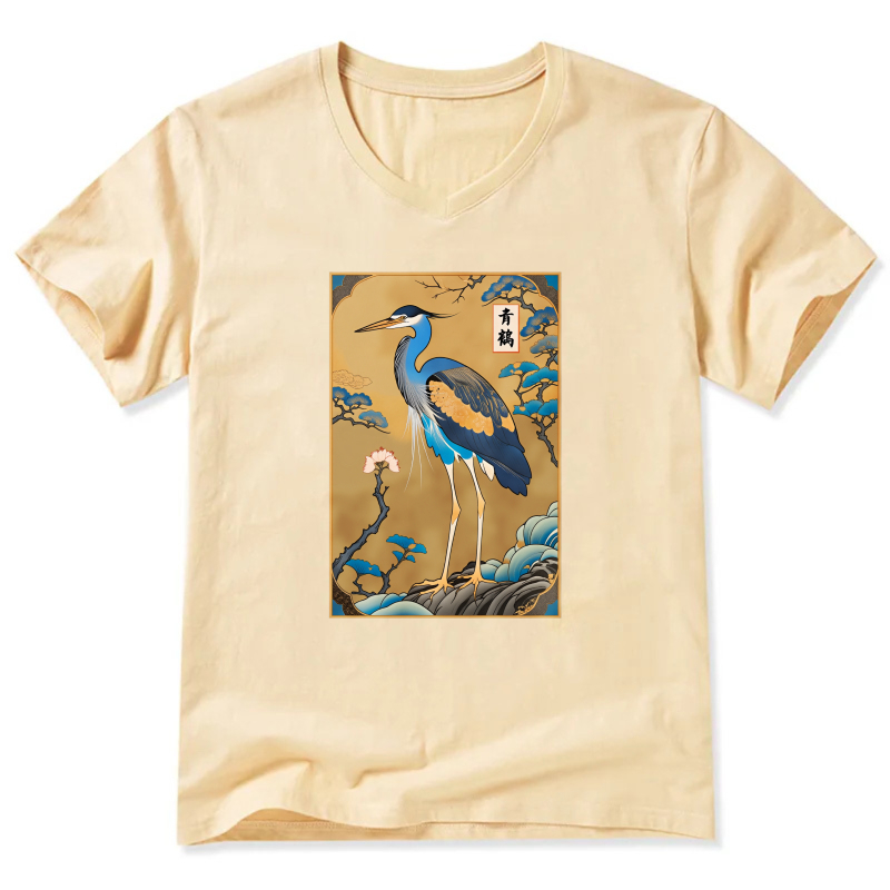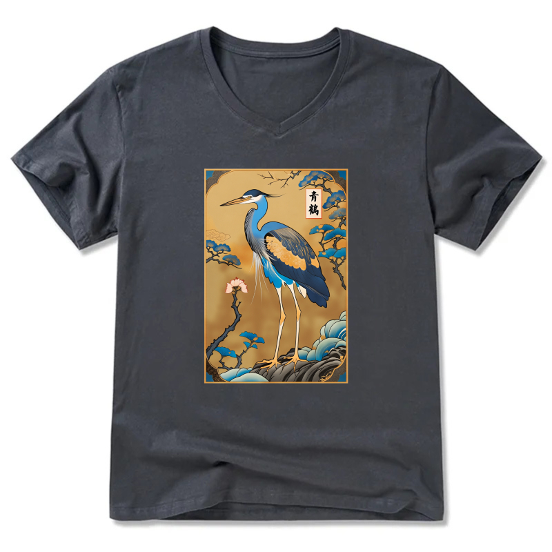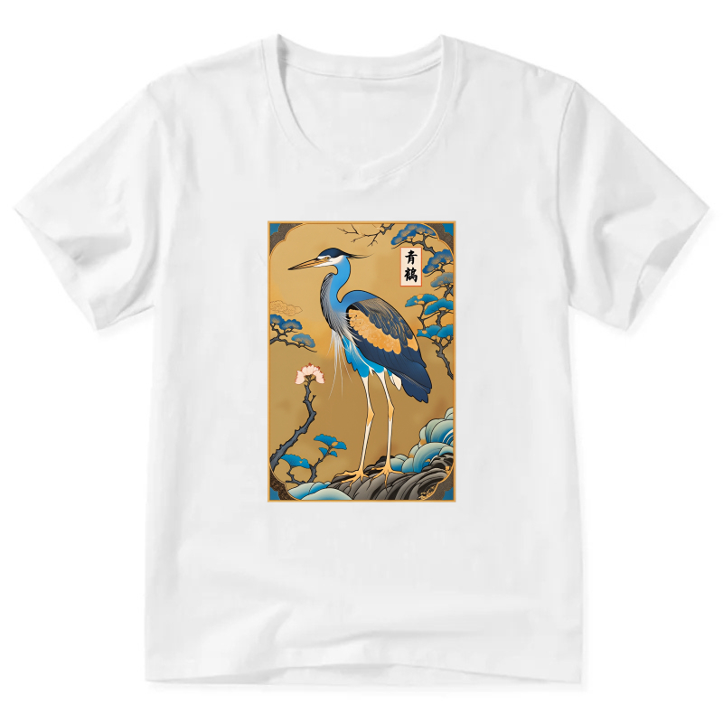 Japanese Crane Bird Art Print T Shirt Men Women Unisex Black Design
