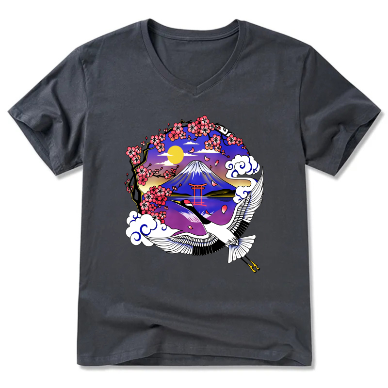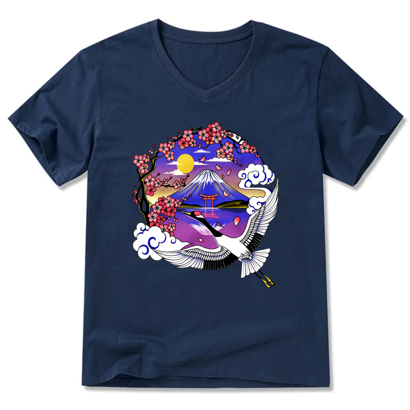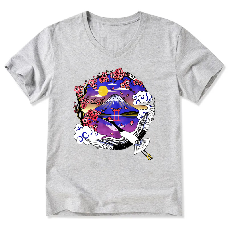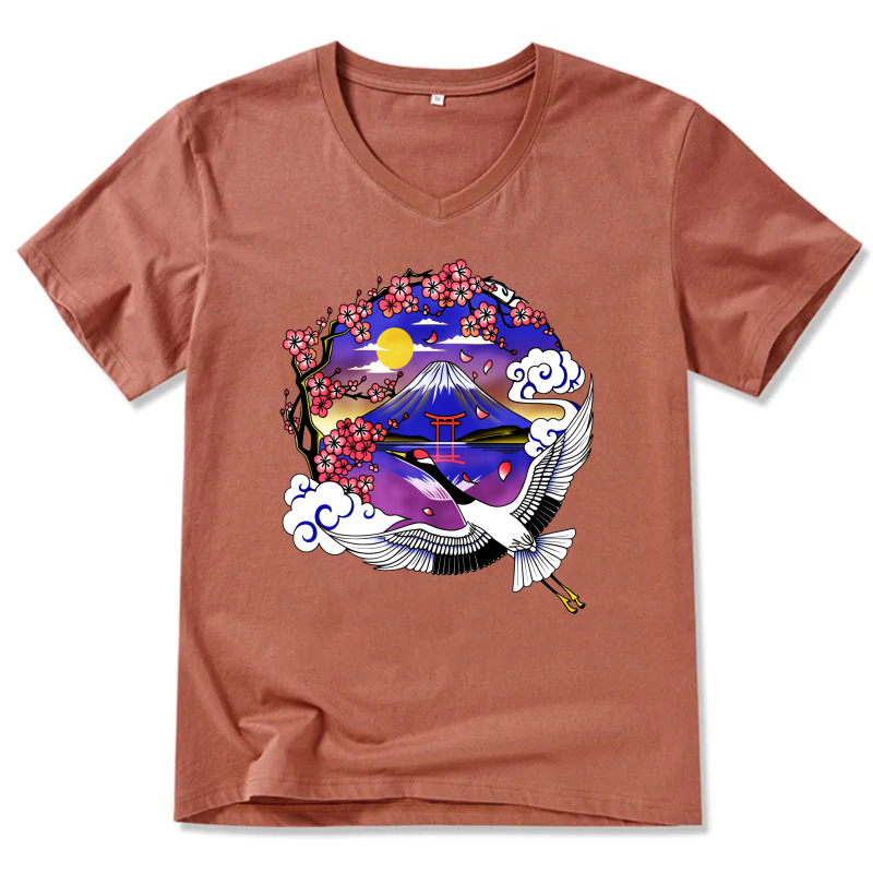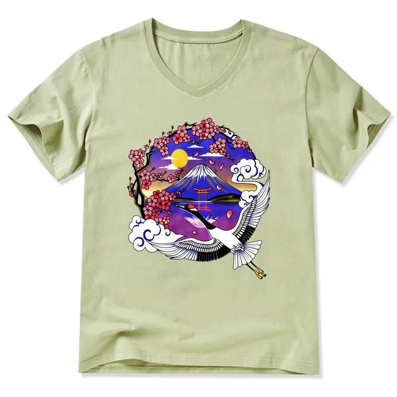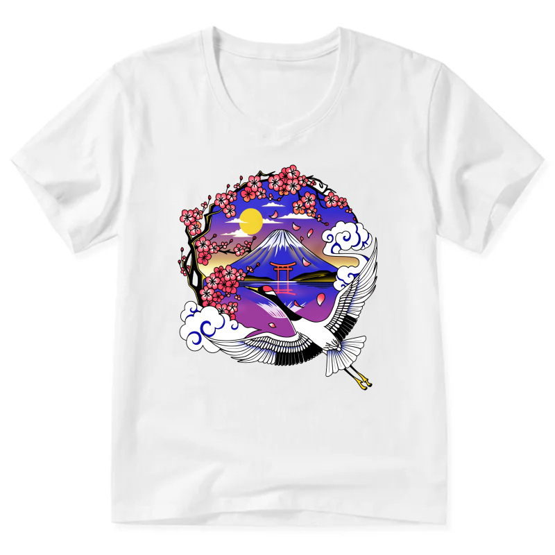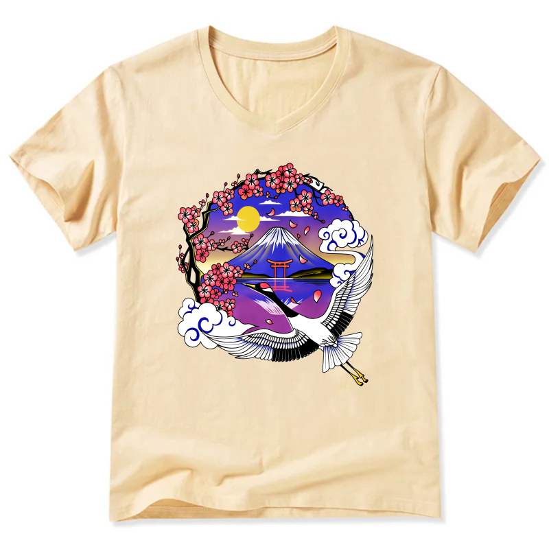 Japanese Mountain Cherry Blossom Crane T Shirt
