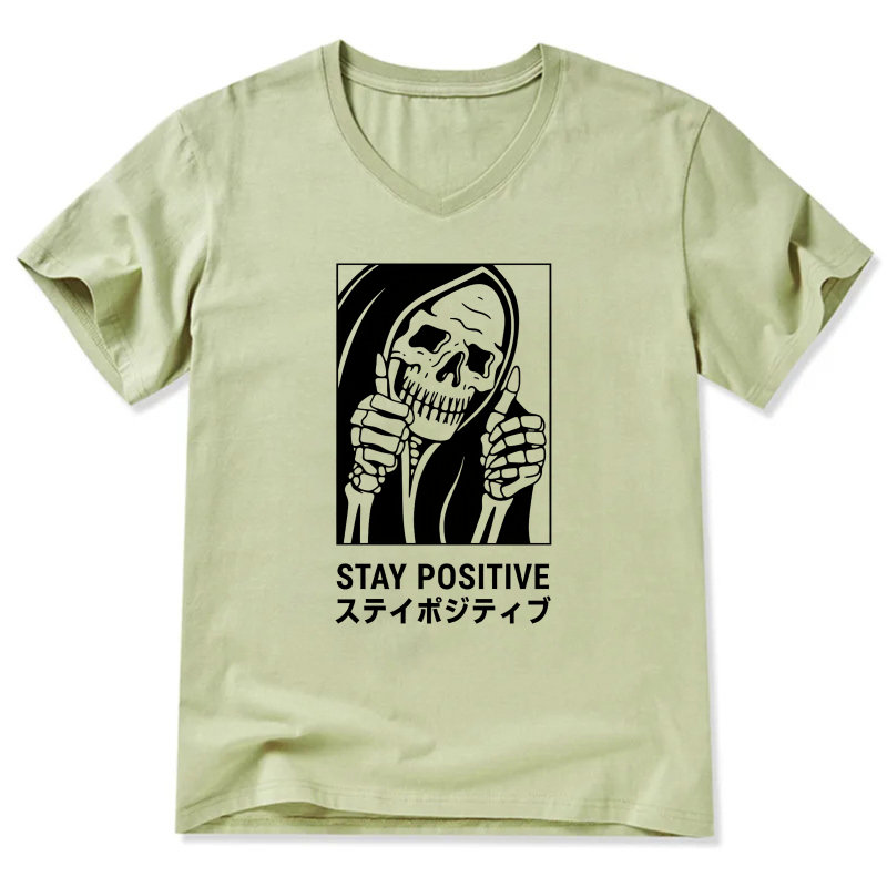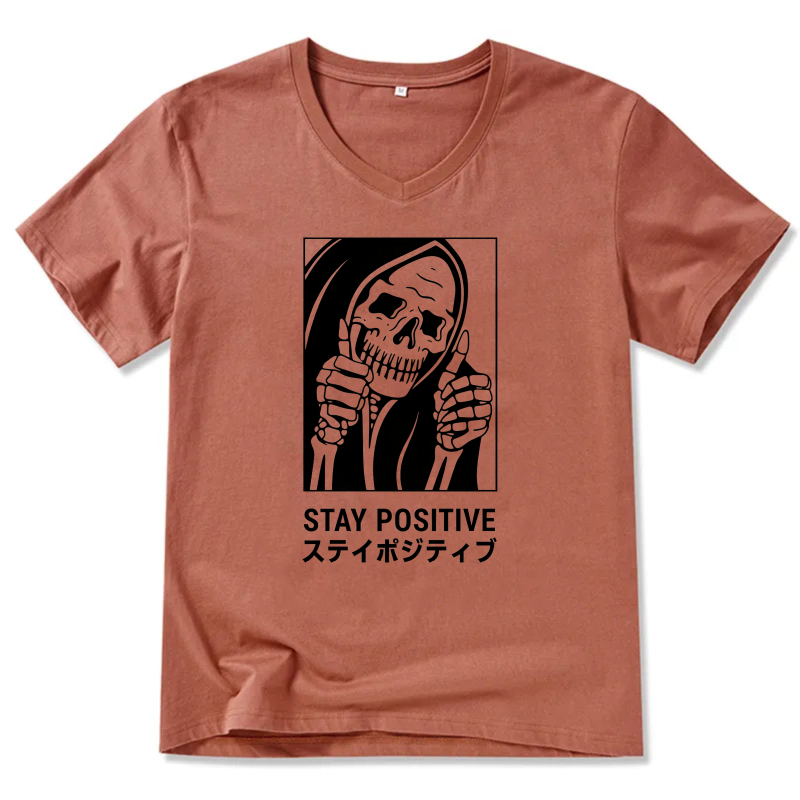 Stay Positive Skull Graphic T-Shirt Black Men Women Casual Wear
